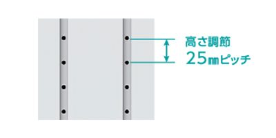 オプションのキーボードトレイ・棚板・バスケットは、25㎜ピッチで
